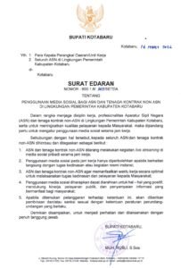 Kotabaru – Pemerintah Kabupaten Kotabaru menerbitkan Surat Edaran Nomor 800.1.6/369/SETDA tentang penggunaan