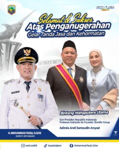 KOTABARU – Pemerintah Kabupaten Kotabaru memberikan apresiasi setinggi-tingginya kepada H. Andi Syamsudin Arsyad (Haji Isam) atas penganugerahan Tanda Kehormatan Bintang
