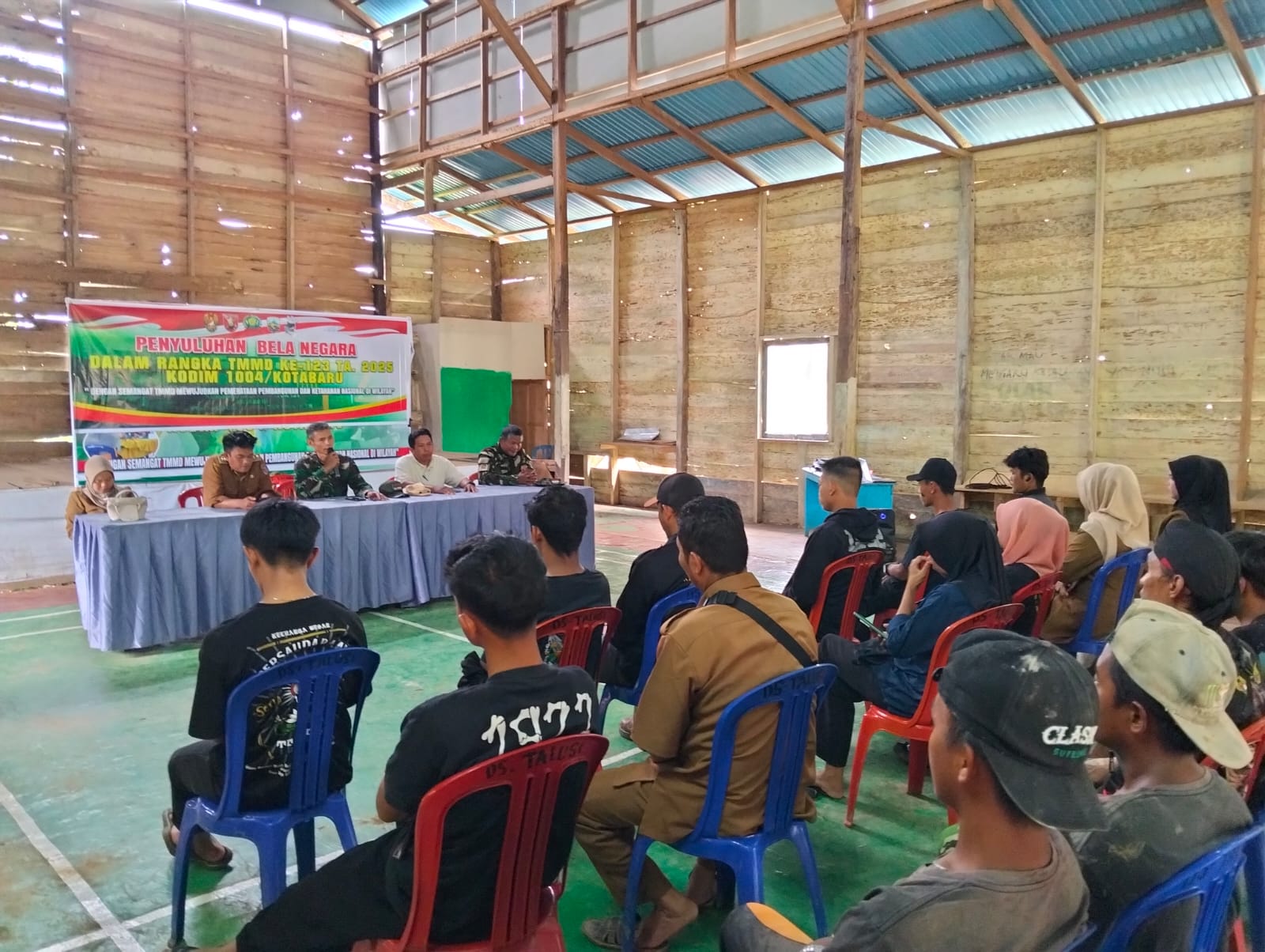 Nusantaravoices, Kotabaru – Satuan Tugas (Satgas) Tentara Manunggal Membangun Desa (TMMD) ke-123 Kodim 1004/Kotabaru menggelar sosialisasi bela negara bagi masyarakat Desa Talusi. Kegiatan ini bertujuan memperkuat rasa cinta tanah air, kesadaran berbangsa, serta memupuk semangat gotong royong dalam menjaga kedaulatan dan keutuhan Negara Kesatuan Republik Indonesia (NKRI).(18/3)
