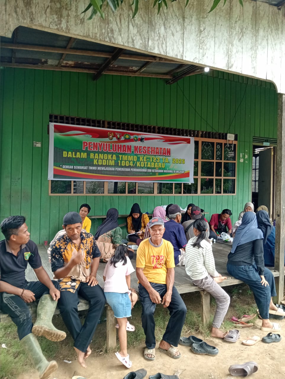 Nusantaravoices, Kotabaru – Satuan Tugas (Satgas) Tentara Manunggal Membangun Desa (TMMD) ke-123 Kodim 1004 Kotabaru menggelar sosialisasi kesehatan bagi masyarakat Desa Talusi, Kecamatan Pamukan Selatan, Selasa (13/5/2025). Kegiatan ini bertujuan meningkatkan kualitas hidup masyarakat dengan memberikan edukasi kesehatan dasar, terutama bagi warga yang memiliki keterbatasan akses terhadap layanan medis.