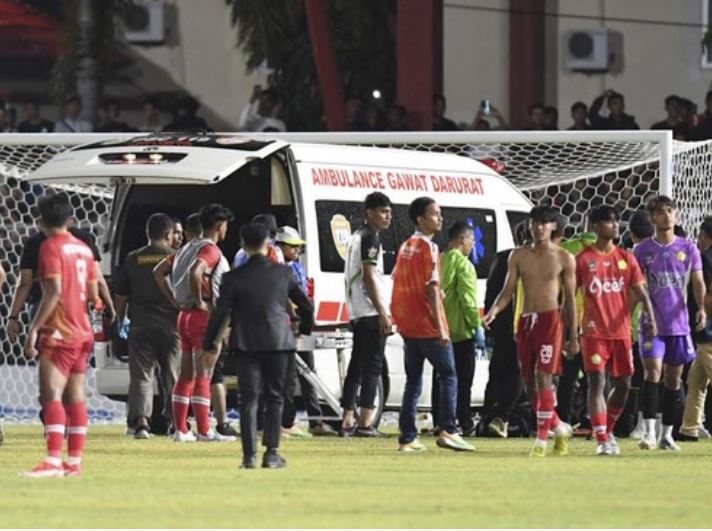 Hal ini membuat pendukung tuan rumah kesal dan melemparkan botol ke lapangan. Kericuhan pun sempat terjadi dan pada akhirnya pertandingan terhenti untuk sementara.